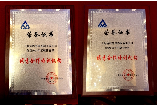 4月15日,中国国际人才交流基金会2025国际先进知识体系引进推广工作年会在北京成功召开,清晖受邀参加本次大会并获得2024年度项目管理优秀合作培训机构奖和2024年度NPDP优秀合作培训机构奖。