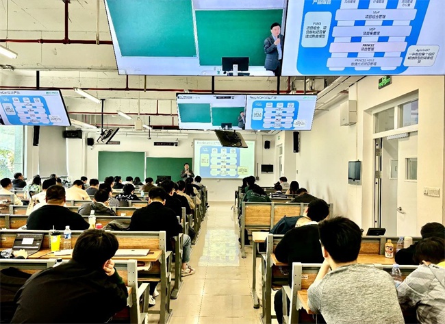 颁奖仪式结束后,清晖创始人傅永康先生带来了题为《中国项目管理教育培训回顾与思考》的工程管理前沿论坛讲座。他以丰富的行业阅历,深入剖析了中国项目管理教育培训的发展历程、现状及未来趋势,为师生们带来了极具价值的行业洞察,拓宽了大家的视野。在学生提问环节,同学们积极踊跃,就项目管理实践中的转型与发展等问题进行提问,现场互动频繁,气氛活跃。