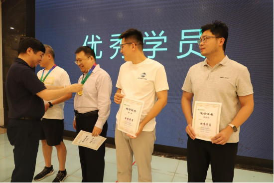 茶歇过后,迎来非常有意思的互动环节,清晖董事长傅永康老师、南京分公司总经理蔡兰女士、PMI(中国)大客户经理 Kevin先生为石明川、张金陵、董杰、顾启航同学颁发清晖优秀学员奖,并拍照留念。