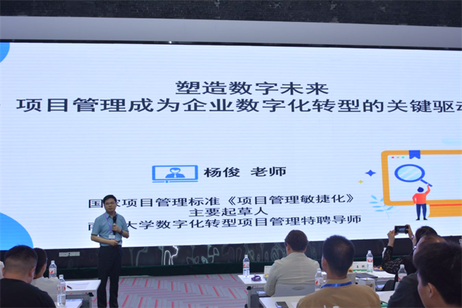 最后,杨俊老师以《塑造数字未来——项目管理成为企业数字化转型的关键驱动力》为主题,为现场观众带来了深刻的见解。