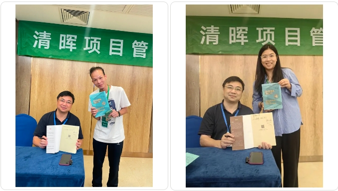 茶歇时段,除了丰富多彩的美食令人垂涎,还设有清晖译书的签售活动。专业项目管理书籍的展示台前人头攒动,吸引了大量与会者驻足选购。随后,大家井然有序地排队,期待获得傅老师的亲笔签名,并与之合影留念,现场气氛温馨而热烈。