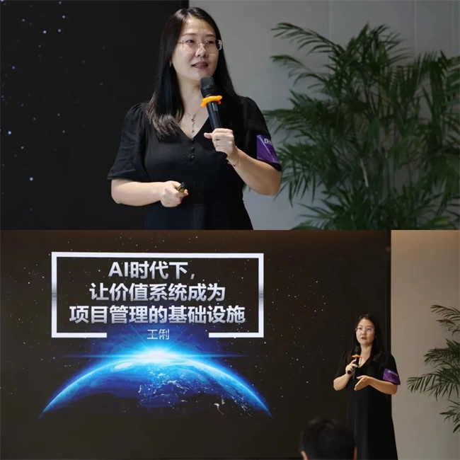 最后一位分享的嘉宾是王俐老师,她以《AI时代,让价值系统成为项目管理的基础设施》为题,为听众带来了深刻的见解。王老师从四个核心方面展开分享:首先,她探讨了AI时代下技术如何推动项目管理的发展;接着,阐述了AI技术与项目管理学习如何共同构建高效的价值交付系统;随后,她还推荐了一些优秀的AI应用工具,帮助学员们更好地应用AI于实际工作中;最后,王老师不忘分享好书,拓宽学员们的阅读视野。