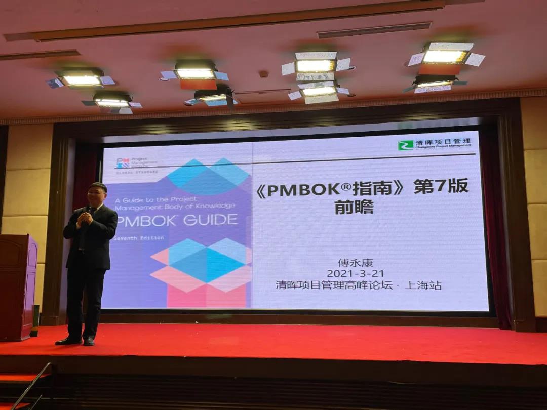 压轴登场的是清晖项目管理创始人傅永康先生分享《PMBOK第七版前瞻》。傅老师针对从VUCA到项目经济时代、PMBOK指南的发展历史、PMBOK指南第7版的演变、项目经理能力发展启示四个方面对《PMBOK®指南》第7版前瞻进行了分享。