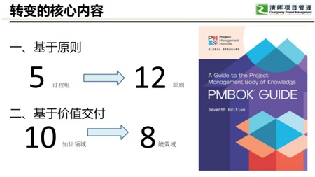 听完傅老师的分享,第七版的变化可以用“颠覆”这个词来形容,我们熟悉的五大过程组和十个知识领域,变成了项目管理十二原则与八大绩效域。