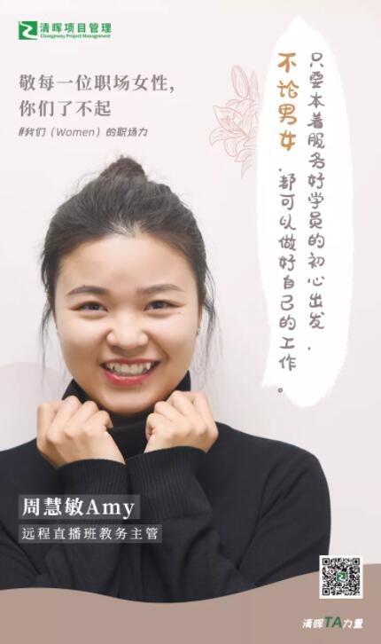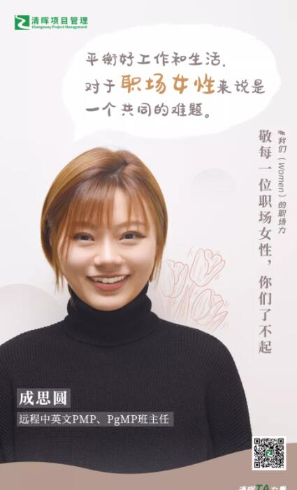 漂亮是思圆给人的第一印象,可她也没有让人忽视她的优秀。留学回国、清晖首届PMP英文班班主任、全英文考试的PgMP班主任、短时间内拿到PMP证书,这些都是她在工作中给自己的鞭策,也是对自己的严格要求。