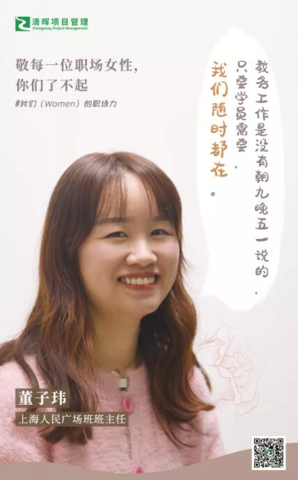 在清晖工作五年多的时间下来,子玮仿佛成为了学员的知心姐姐,他们遇到工作中生活中的问题也都愿意跟她倾诉,向她寻求一个解答。