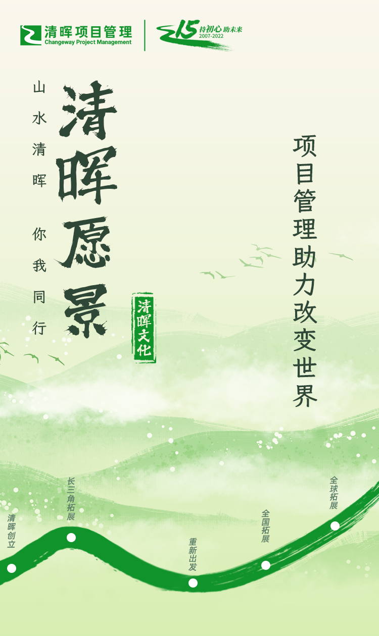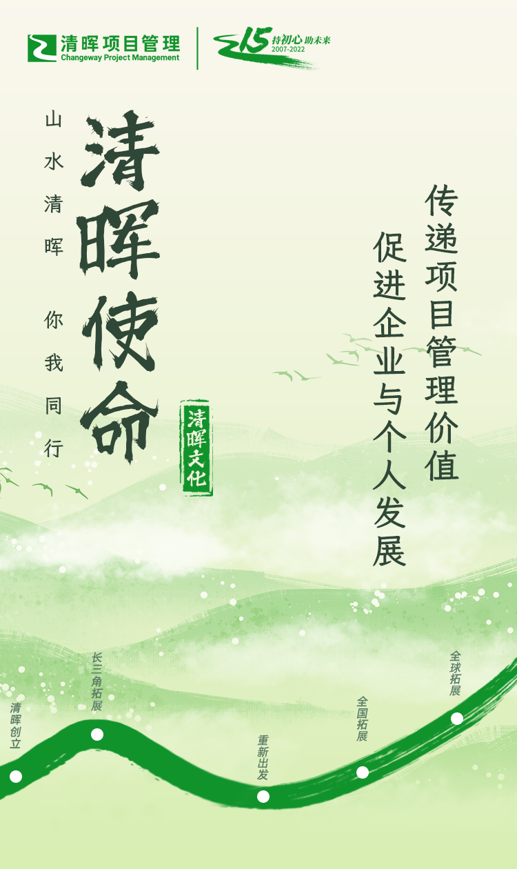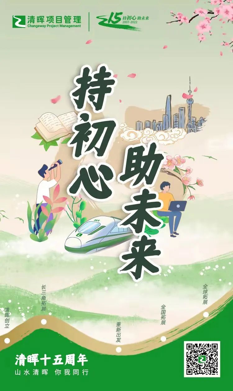 十五岁对于一个人的人生来说,正是有着未来无限可能的青春年少时光。愿清晖在下一个十五年,继续秉持自己的初心,并永葆一颗少年的心,去不懈追求未来的发展成长,在项目管理的世界中继续扬帆远航。