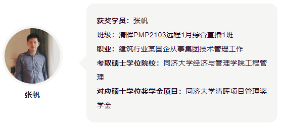“清晖深造奖学金”为上海清晖管理咨询有限公司面向清晖PMP学员所发布的奖学金激励计划,旨在激发清晖PMP学员持续深造学习的积极性。本奖学金本着公开、公平、公正原则,奖励给有志于在项目管理领域持续深造发展,勇于攀登、锐意进取的优秀PMP学员。