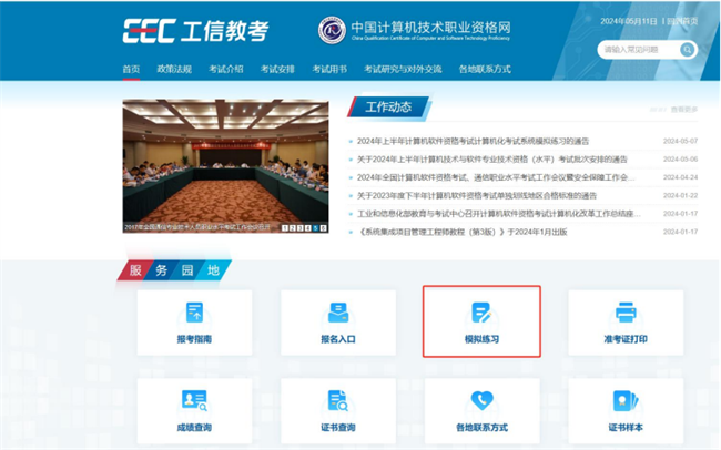 一、登录中国计算机技术职业资格网(https://www.ruankao.org.cn/),点击服务园地的【模拟练习】。