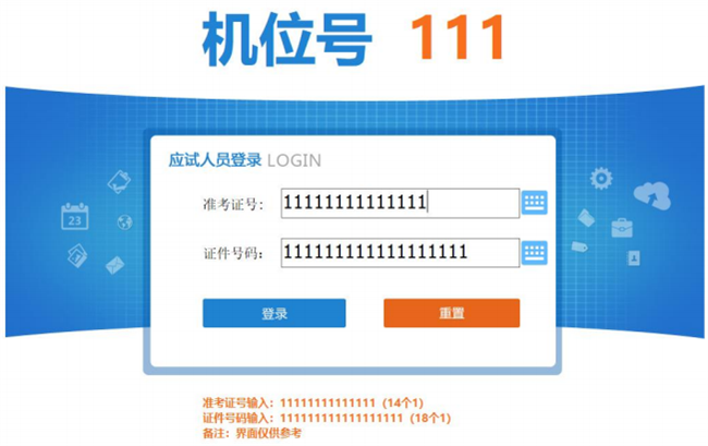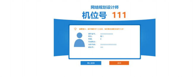 输入准考证号和证件号码,点击“登录”按钮进入确认登录界面。(按界面提示的输入)。