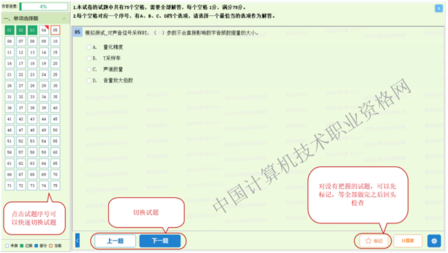 时间管理:注意考试时间,按照屏幕上的提示开始和结束考试。在考试过程中,合理分配答题时间,确保能够在规定时间内完成所有题目。如果单科考试未达到最短作答时长则不能提前交卷,无法进入下一场考试。