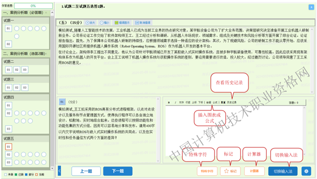 模拟作答系统是旨在让考生熟悉计算机化考试环境和作答方式,模拟作答不保存考生作答历史记录。考试题型、题量、分值、界面及文字内容以正式考试答题系统为准。