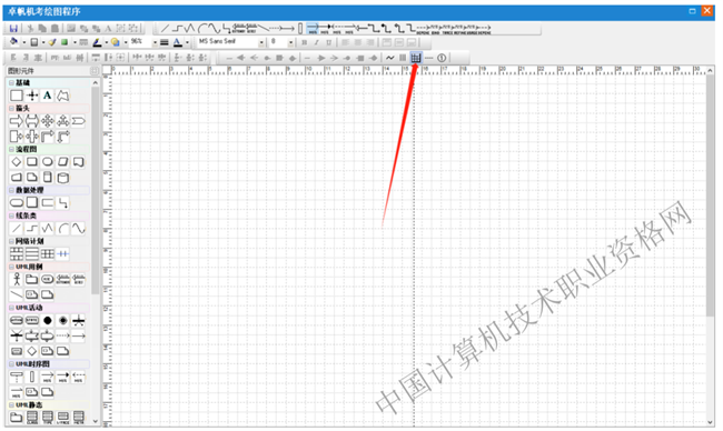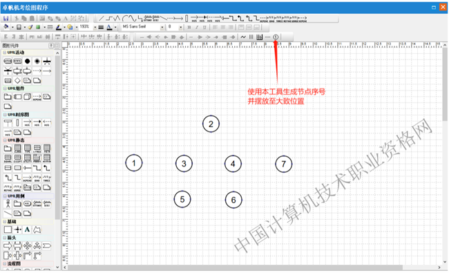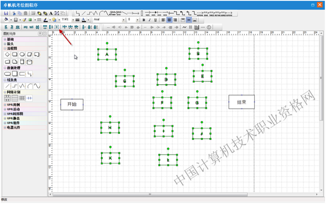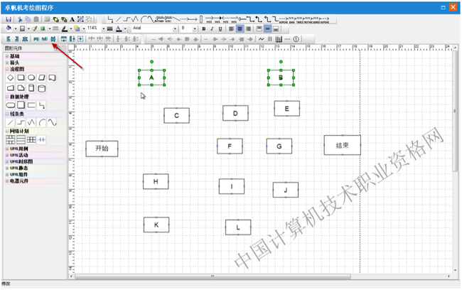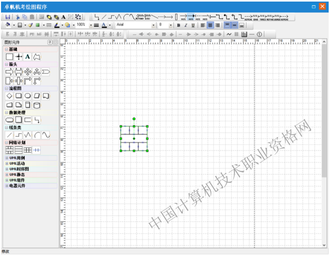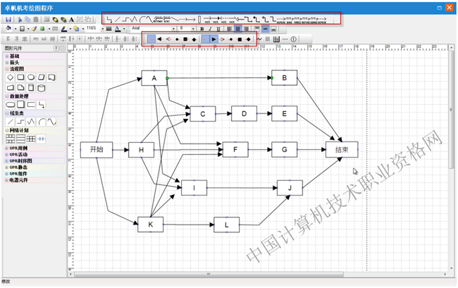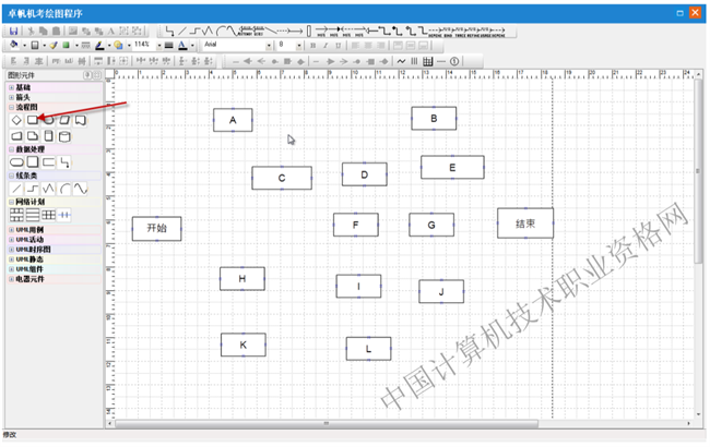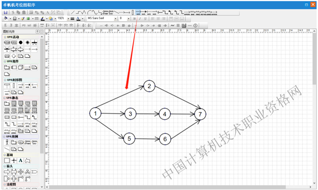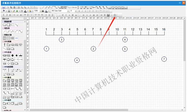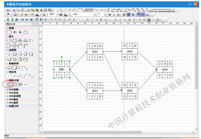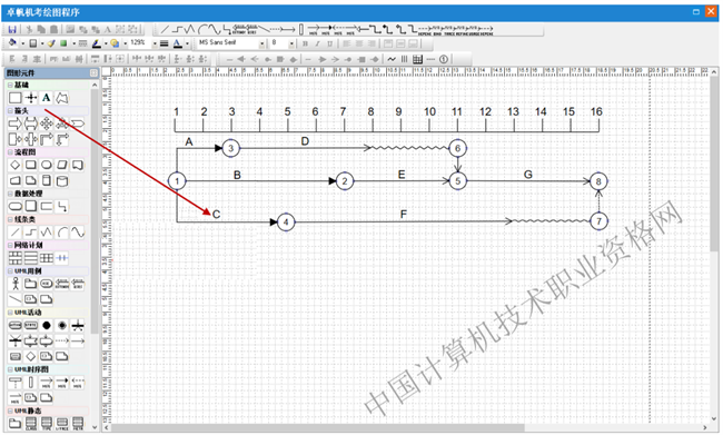 第一步:选择图形元件“网络计划”中的七格图元件,在绘图区点击