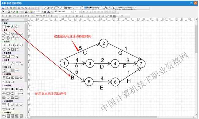 第三步:双击箭线注明活动持续时间,再使用文本工具标注活动序号。