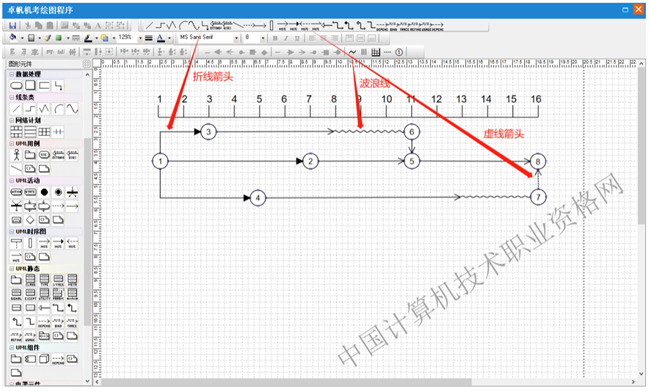 第四步:双击箭线或使用文本工具标注活动序号