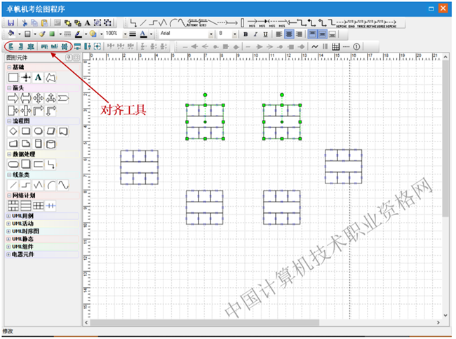 选中多个图形后,可点左上角的对齐工具进行对齐;