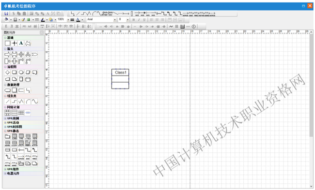 第一步:选择 UML 静态中 Class 元件,在绘图出绘制类