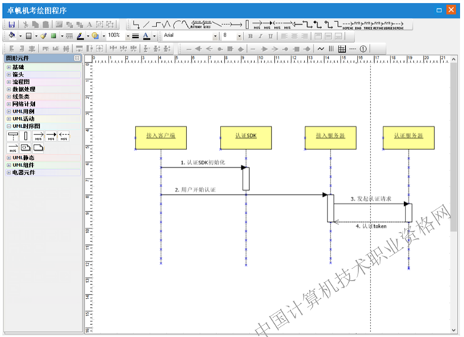 绘制方法同绘制类图类似,主要选择“UML时序图”中的元件进行绘制。