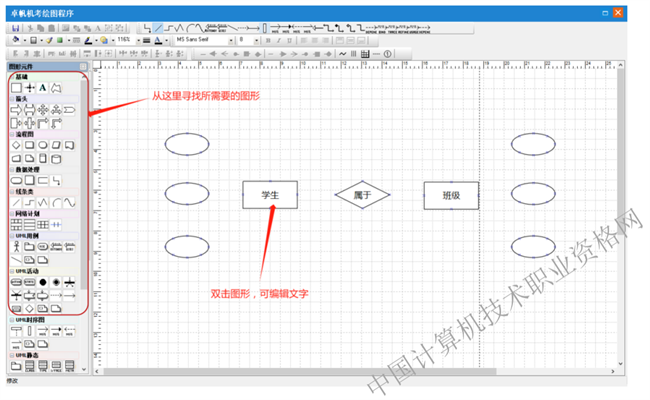 2、如何修改复杂图形中的文本(如七格图、类图):双击要修改的图形元件即可。