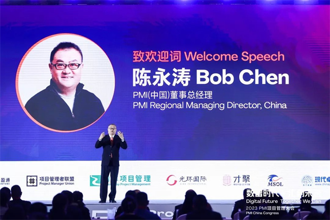 下午一点半,项目管理大会在热烈的氛围中拉开了帷幕,PMI(中国)董事总经理陈永涛先生致欢迎辞,他在欢迎辞中表示,越来越多的人开始重视项目管理,中国PMP持证人数达到60万,这离不开各位项目管理从业者的支持,PMI的知识体系能够有效的提高项目成功率,成功的项目不仅能使我们达到目的同时也能改变世界,让世界变得更好,在当今的数智时代,我们希望有更多的方法和资源提供给大家,从而达到共享共赢!