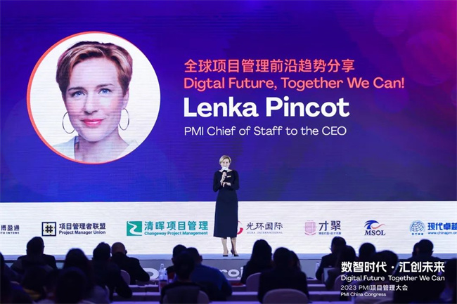 随后,PMI Chief of Staff to the CEO Lenka Pincot女士分享了全球项目管理前沿趋势,全球大趋势正在重塑项目经济,项目经理的角色也随之不断演变,她在分享中介绍了项目管理的演变,帮助大家理解终身学习的重要性。