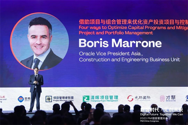 甲骨文亚洲副总裁Boris Marrone先生发表了主题为《借助项目与组合管理来优化资产投资项目与控制风险的四个方法》的演讲,探讨数字化技术方案如何在项目及其组合层面优化资本投资项目管理。他在演讲中分享了在项目及其组合层面优化资本投资与控制风险的四个方法:
