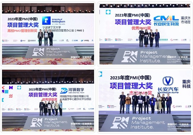 开场欢迎后,令人激动人心的一刻来临——2023年度PMI(中国)项目管理大奖颁奖典礼。这次揭晓的奖项分别有高校PMO管理创新奖、优秀PMO奖、优秀项目奖、杰出PMO奖、杰出项目奖及年度PMO大奖、数智化交付实践大奖、年度项目大奖。这些奖项表彰他们在项目管理领域中做出的贡献。