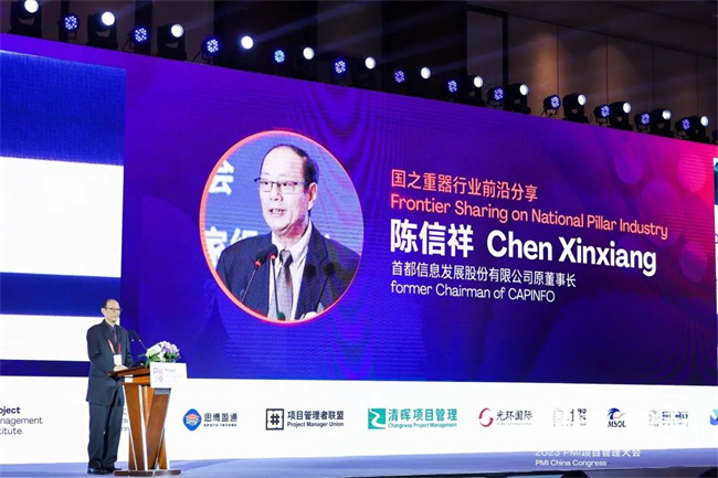 接下来,是国之重器行业前沿主题分享环节。首都信息发展股份有限公司原董事长陈信祥先生做了开场讲述,通过他的讲述介绍能够了解到项目管理大奖评审工作的公开透明及公平公正,同时也见证了获奖企业的实至名归。