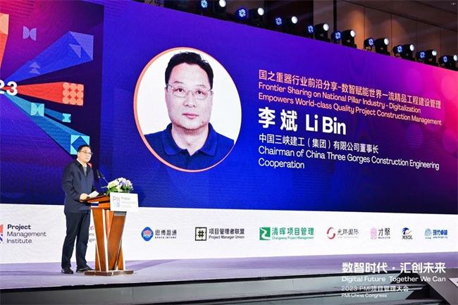 随后,中国三峡建工(集团)有限公司董事长李斌先生发表了《数智赋能世界一流精品工程建设管理》演讲。
