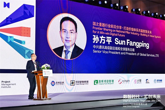 中兴通讯高级副总裁和全球服务总裁孙方平先生发表了《打造价值体系共赢数智未来》演讲。