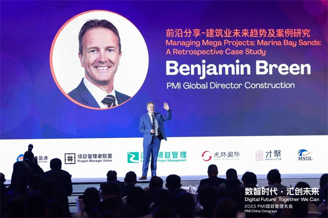紧接着,Global Director Construction,Benjamin Breen先生做了《前沿分享—建筑业未来趋势及案例研究》的主题演讲,他在演讲中分享了如何利用PMI最新的建筑认证——PMI-CPTM来塑造行业未来,打造卓越的项目。通过前沿信息分享及新加坡滨海湾金沙酒店案例回顾为建筑和建筑环境行业的项目经理提供了建筑业项目管理实践的参考借鉴。