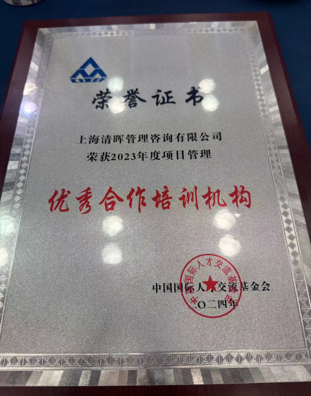 喜报!清晖荣获2023年度中国国际人才交流基金会“优秀合作培训机构”