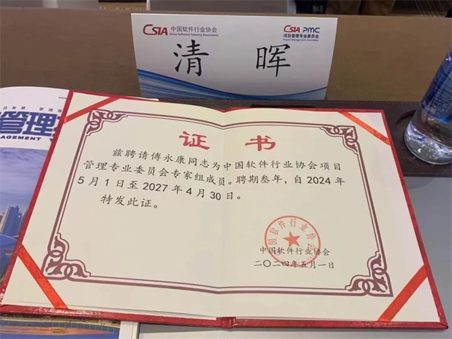 清晖创始人、董事长傅永康老师受聘成为中软协项目管理专业委员会专家组成员。