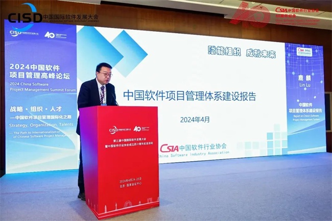 最后,专委会副秘书长鹿麟先生向与会嘉宾做了《中国软件项目管理体系建设报告》分享。