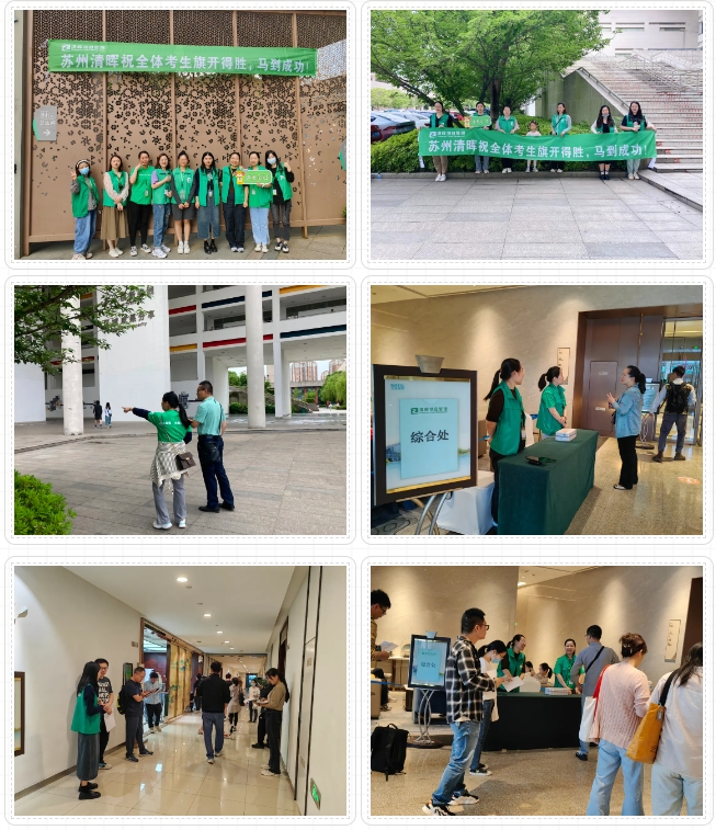 清晖送考服务遍及全国多地,在苏州、无锡、常州、南通、徐州五个城市,清晖自有考点,这些城市的送考小分队提前到达,不辞辛劳地协助布置考场,为学员们创造一个整洁、有序的考试环境。