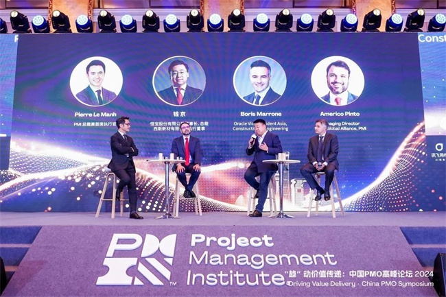 PMI总裁兼首席执行官Pierre Le Manh 先生现场分享了全球组织级PMO发展趋势,并主持了一场高峰对话,与甲骨文亚洲副总裁Boris Marrone,恒宝股份有限公司董事长、总裁及西斯新材有限公司执行董事钱京,PMI PMOGA董事总经理Americo Pinto共同探讨了PMO的历史发展与未来。