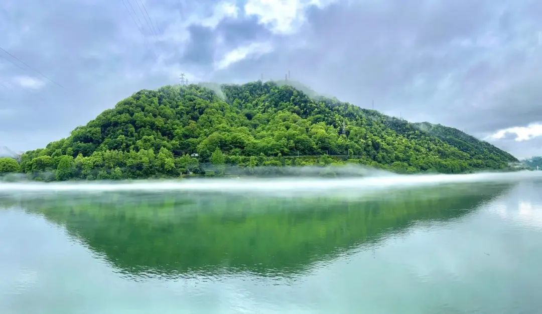 (晨起面山临江,笑谈昨夜雷鸣电“断”,拾餐聚座,推视开屏,速水如画,轻风驾云,爬窗快雨,蕴藉青山;
