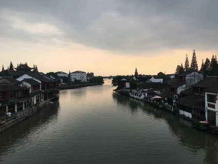 朱家角因水而盛,因水而秀,朱家角的水犹如少女的长发,柔和平静,盈盈河水养育滋润了古镇。朱家角河港纵横,全镇九条长街沿河而伸,偎依着漕港条条支流,宛如一把张开的大折扇。朱家角家家临水,户户通舟,素有上海威尼斯之誉。