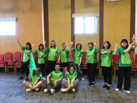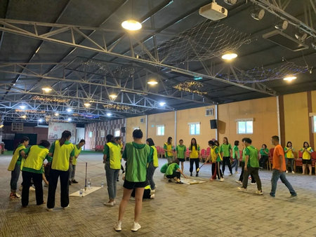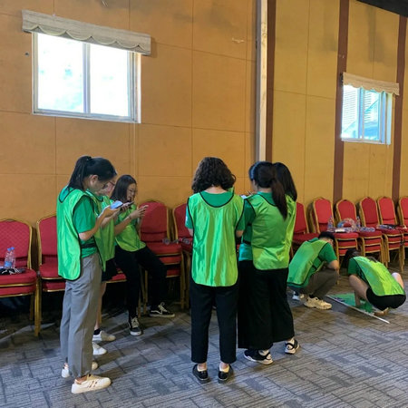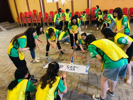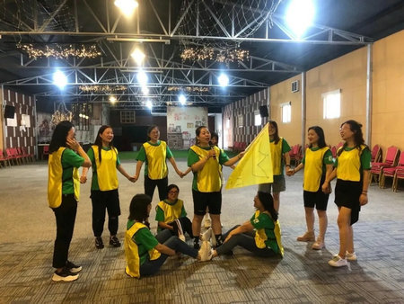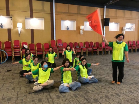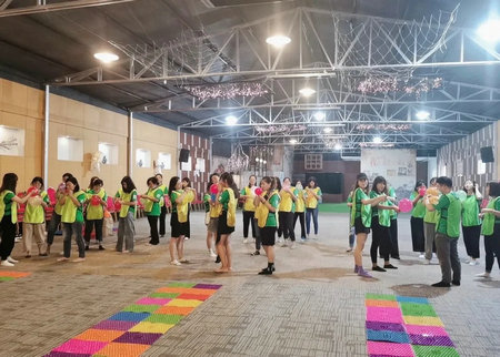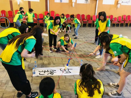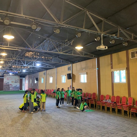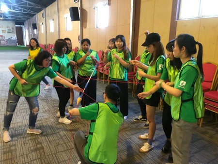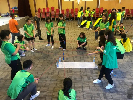 午餐过后,下午的大部分时间都在凉风阵阵的团建馆做集体游戏,伴着阵阵欢笑和尖叫,清晖的俊男美女们开始团队游戏了。