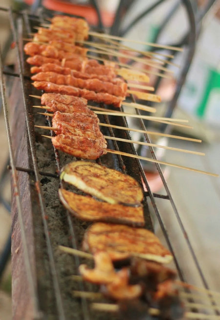 随着阵阵“滋啦滋啦”的油爆声,小伙伴们娴熟地来回翻着架子上的烤串,抹油、撒调料、翻面全套烤串动作一气呵成,丝毫不输与街边卖烤串的师傅。
