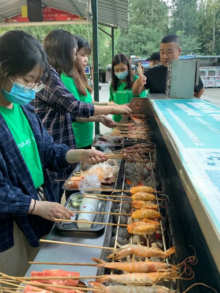 指压板来回接力跑 在两个小时的团建游戏中时间过的飞快,接下来就到今天晚上的重头戏啦——自助烧烤。