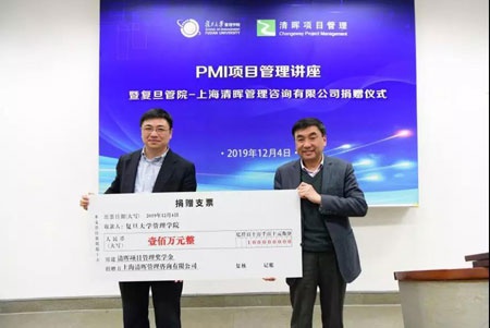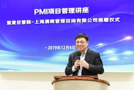 2019年12月4日,PMI项目管理讲座暨复旦管院-上海清晖管理咨询有限公司捐赠仪式在复旦大学管理学院史带楼举行。复旦大学管理学院党委副书记叶耀华、PMI(中国)董事总经理陈永涛、清晖项目管理创始人傅永康等出席仪式。