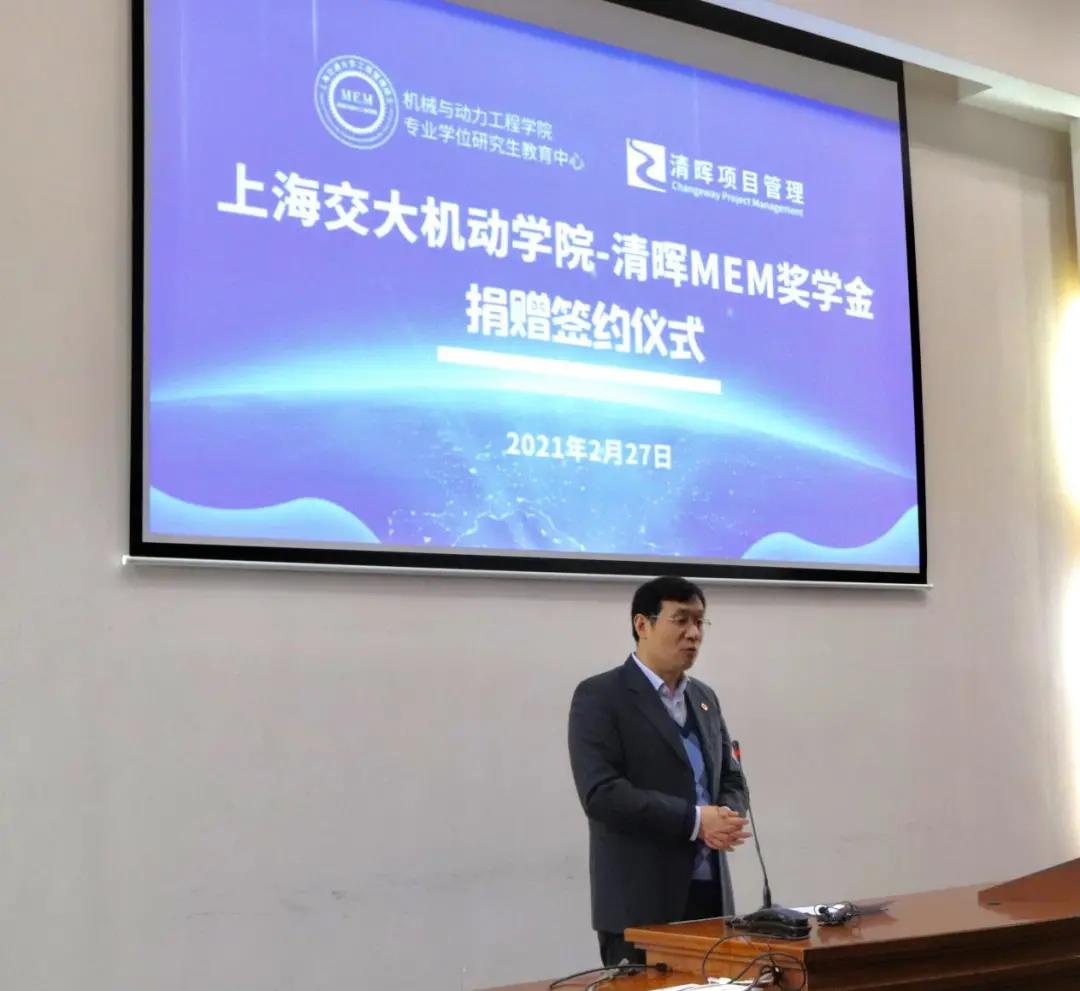 2021年2月27日下午,上海交大机动学院(上海交通大学机械与动力工程学院)-清晖MEM奖学金捐赠签约仪式在上海交通大学徐汇校区工程馆顺利举行。