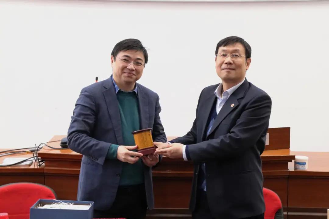▲副院长王皓教授为傅永康先生赠送纪念品