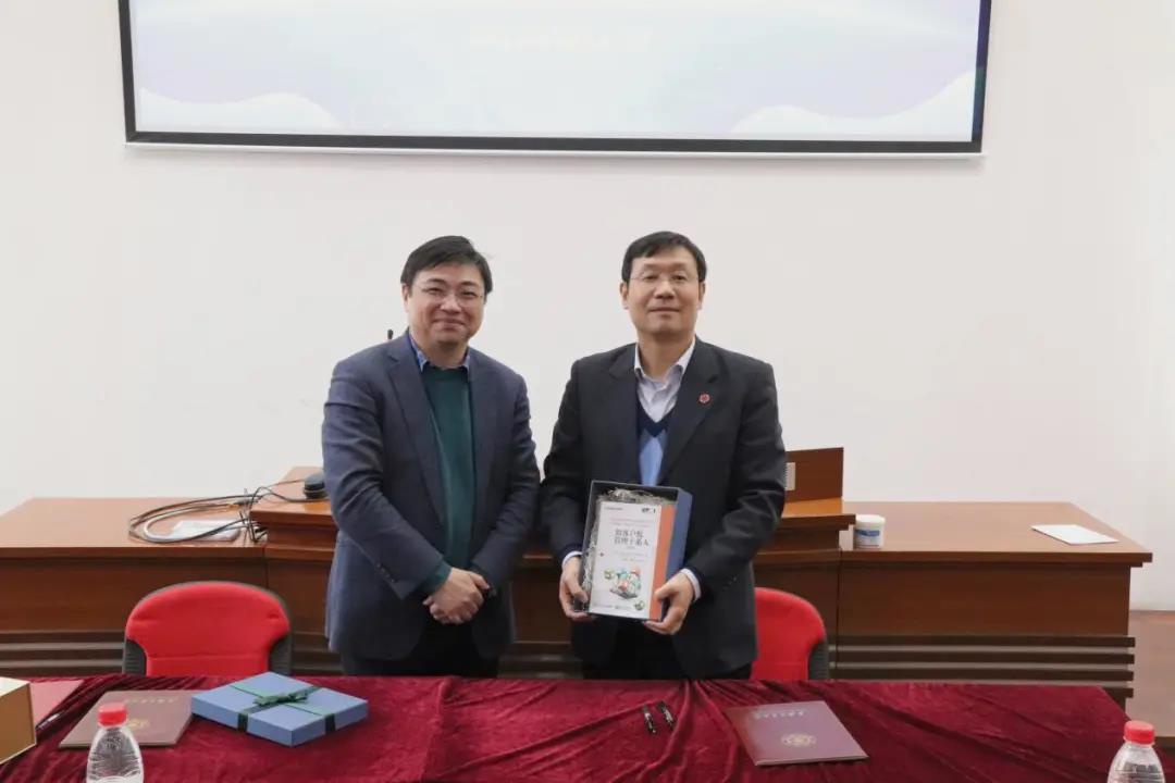 ▲傅永康先生为副院长王皓教授赠书