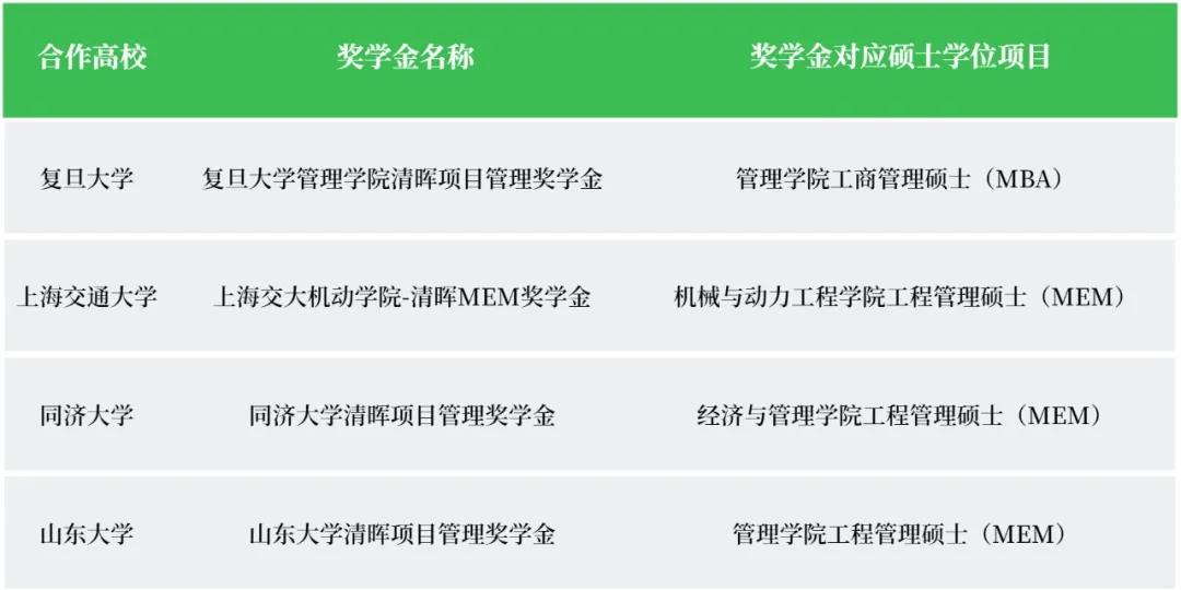 3、所考取高校硕士学位仅限清晖奖学金合作高校相对应硕士学位项目;