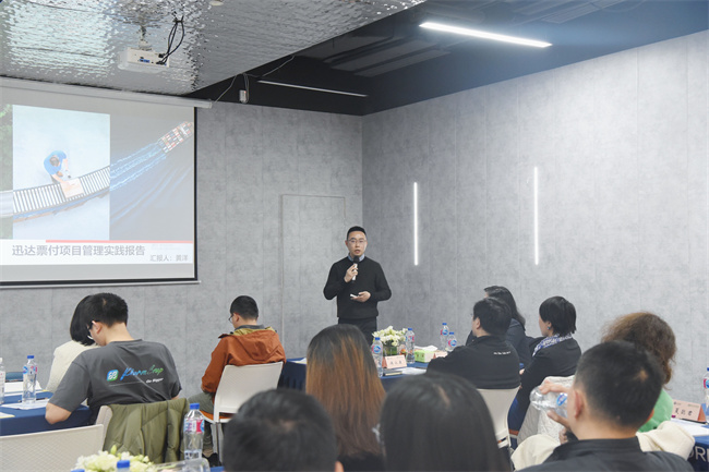 致辞结束,清晖专职讲师闫清老师为大家带来了《项目管理最佳实践思路与落地》主题分享,围绕“企业组织项目管理能力缺失”、“企业项目经理/团队能力晋级必备”、“评估自画像与提升目标”、“快速提升团队能力”等内容进行分享,引发与会人员共鸣。